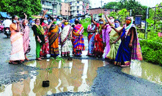 कर्जत-दहिवली हा रस्ता मुरबाड ला जोडला गेल्याने या रस्त्यावरून जड वाहनांबरोबर अन्य वाहनांची वर्दळ मोठ्या प्रमाणात असते. त्यामुळे या रस्त्यावर मोठमोठे खड्डे पडले आहे, तसेच पावसाच्या पाण्यामुळे खड्ड्यांचा अंदाज येत नसल्याने अपघात घडत आहे. काहींचे तर रात्री अपरात्री खड्ड्याचा अंदाज येत नसल्याने वाहनचालकाचे प्राण गेले आहे. ज्येष्ठ वयोवृद्ध नागरिकांना तर या रस्त्याचा प्रचंड त्रास होत आहे. याबाबत विविध पक्षांनी निवेदन दिले मोर्चा काढला, तरीही रस्ता झाला नाही. नारीशक्तीच्या स्विटी बार्शी, माजी नगराध्यक्ष रजनी गायकवाड, वर्षा डेरवणकर, सुप्रिया मोरे, कमल जाधव, नानी गुरव, सुनीता गाडे, मालती वाडगावकर, आशा गाडे आदी महिला उपस्थित होत्या.‘सध्या कर्जतमध्ये रस्त्याची चांगलीच चाळण झाली आहे. प्रत्येक ठिकाणी खड्डे पडले आहेत आणि या खड्ड्यामुळे अपघात घडत आहे. काळजीपूर्वक किती वाहणे चालवीत असूनही अपघात घडत आहे, तर स.बां. विभागाला जाग येत नाही.- स्वीटी बार्शी, महिला कार्यकर्त्याकर्जत नगरपरिषद हद्दीतील कर्जत दहिवली गावातून जाणारे रस्त्यासंदर्भात सार्वजनिक बांधकाम विभागाविरोधात आंदोलन करून खड्ड्यांमध्ये वृक्षारोपण करून निषेध नोंदविला आहे, तरी सार्वजनिक बांधकाम विभागाने काँक्रिटच्या कामांना लवकरात लवकर निविदा काढून कामाला सुरुवात करावी. यासाठी सार्वजनिक बांधकाम विभागाकडे पाठपुरावा नक्की केला जाईल.’- शरद लाड, विरोधी पक्षनेते, कर्जत नगरपरिषद‘कर्जत-दहिवली रस्ता नव्याने करण्याकरिता अनेकदा निवेदने दिली आहेत. मात्र, अद्यापपर्यंत सार्वजनिक बांधकाम विभागाने का केला नाही हे गुलदस्त्यात आहे.’- रजनी गायकवाड, माजी नगराध्यक्ष