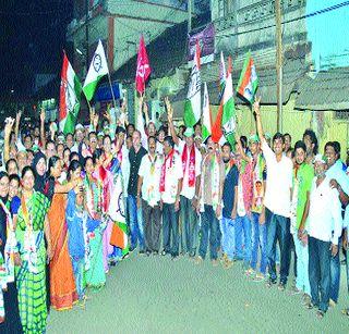 नांदगाव/ मुरुड : मुरुड नगरपरिषद निवडणुकीत राष्ट्रवादी, शेकाप व काँग्रेस आय पक्षाची महाआघाडी झाली असून नुकत्याच काढलेल्या प्रचार रॅलीस मोठा प्रतिसाद लाभला आहे. या तिन्ही पक्षांच्या कार्यकर्त्यांनी शेकडोच्या संख्येने रस्त्यावर उतरून मोठ्या प्रमाणात ही प्रचार रॅली काढली. या प्रचार रॅलीत राष्ट्रवादी तालुका अध्यक्ष मंगेश दांडेकर, मुरुड तालुका शेतकरी कामगार पक्षाचे चिटणीस मनोज भगत, नाना गुरव, विश्वास चव्हाण, मनोहर बैले, मनोहर मकू, नगराध्यक्षपदाच्या उमेदवार मुग्धा दांडेकर, बाबा दांडेकर आदींसह असंख्य कार्यकर्ते शेकडोच्या संख्येने उपस्थित होते. सदरच्या रॅलीव्दारे बाजारपेठ, कालभैरव मंदिर, गणेश पाखाडी आदी भागांतून प्रचार करण्यात येऊन आपल्याच आघाडीच्या उमेदवारांना मतदान करण्याचे आवाहन करण्यात आले.या वेळी तालुका चिटणीस मनोज भगत यांनी, गेल्या पाच वर्षांत मुरु ड नगरपरिषद विभागात आमदार सुनील तटकरे यांच्या माध्यमातून अनेक विकासकामे झालेली असून लोकांचा प्रमुख पाणीप्रश्नही सुटल्याने शहरातील सर्व जनता आघाडीवर खूश असून येणाऱ्या दिवसांत नगरपरिषदेवर आघाडीची सत्ता पाहावयास मिळेल, असा विश्वास त्यांनी व्यक्त केला. या प्रचार रॅलीत असंख्य झेंडे फडकवून आघाडीच्या घोषणा करून वातावरण निर्मिती केली. शेकडो लोकांच्या या प्रचार रॅलीमुळे मुरु ड शहरात आघाडीचा जोर दिसून आला. (वार्ताहर)