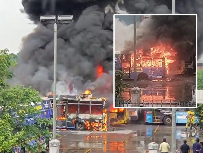नवी मुंबई: नवी मुंबई महापालिकेच्या घणसोली एनएमएमटी बस आगारात उभ्या असलेल्या बसेसना अचानक भीषण आग लागल्याची घटना घडली आहे. या आगीत तीन बसेस जळून खाक झाल्याचे समजते. आगीची माहिती मिळताच महापालिकेच्या कोपरखैरणे आणि ऐरोली अग्निशमन दलाचे जवान घटनास्थळी उशिराने दाखल झाले. अग्निशमन दलाच्या जवानांनी आग विझवण्यासाठी प्रयत्न केले, पण त्यापूर्वीच तीन बसेस पूर्णपणे जळून गेल्या होत्या. आज सकाळी सात वाजताच्या सुमारास ही आगीची घटना घडली.