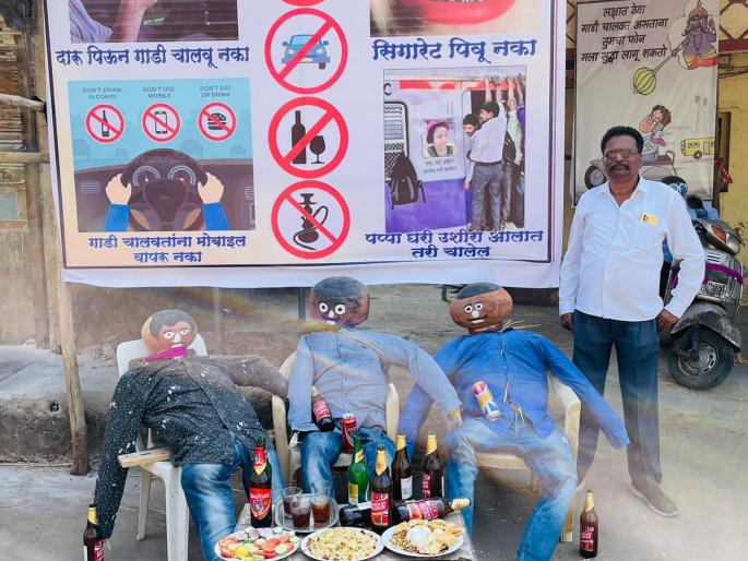 पनवेल: सर्वत्र थर्टी फर्स्ट आणि न्यू इयरची धामधूम सुरु असताना पनवेल मधील सुकापूर येथील दे धक्का ग्रुपने अनोखा देखावा साकारून मद्यपान न करण्याचा संदेश दिला आहे. तरुणाईला अवाहन करणारा संदेश ड्रंक अँड ड्राईव्ह बाबत जनजागृती केली आहे.