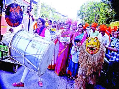 नवी मुंबई : नवी मुंबईसह पनवेल शहरात गुढीपाडव्याचा जल्लोष साजरा करण्यात आला. मराठी नववर्षाच्या स्वागतासाठी सांस्कृतिक, पारंपरिक कार्यक्रमांबरोबर शोभायात्रांचे आयोजन करण्यात आले होते. ढोल-ताशा, लेझीमच्या तालावर तरु णांनी नववर्षाचे स्वागत केले. गुढी उभारून ठिकठिकाणी रांगोळी काढून यात्रेचे स्वागत करण्यात आले होते. लहानांपासून मोठ्यांपर्यंत सर्वच जण उत्साहात शोभायात्रेत सहभागी झाले होते. नववर्षाच्या स्वागताच्या निमित्ताने स्वच्छता, प्लॅस्टिकबंदी आणि मतदान करण्याविषयी जनजागृती करण्यात आली.