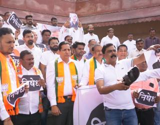 नवी मुंबई : नवी मुंबई भाजपाचे जितेंद्र आव्हाड यांच्या विरोधात आंदोलन