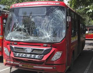 दोन ठिकाणी एनएमएमटी बसला अपघात