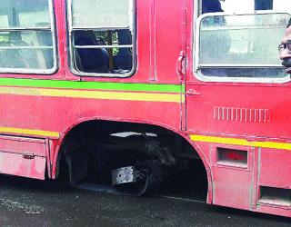 एकाच दिवशी एनएमएमटीच्या दोन बसचे चाक निखळले