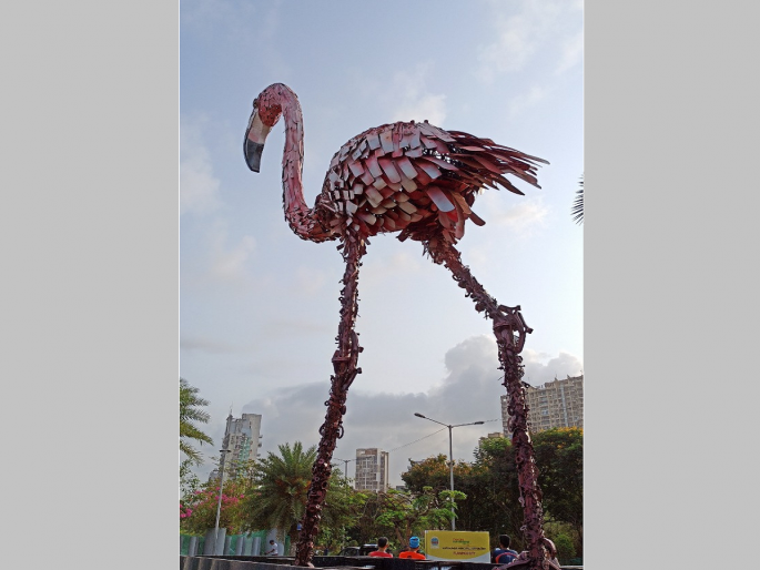 नवी मुंबई : नेरूळमधील ज्वेल्स ऑफ नवी मुंबईच्या प्रवेशद्वारावर महानगरपालिकेने टाकाऊ वस्तूंपासून बनविलेली फ्लेमींगोची २८.५ फूट उंचीची शिल्पाकृत बसविली आहे. २६ यंत्रांमधील तब्बल १७९० टाकाऊ वस्तूंपासून हे शिल्प उभारले असून त्याची बेस्ट ऑफ इंडीया रेकॉर्ड संस्थेने दखल घेतली आहे.