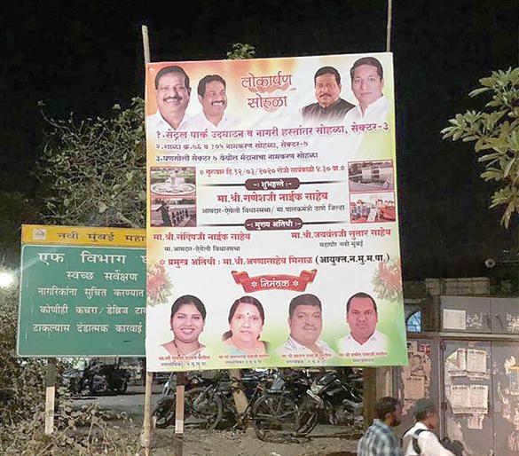 या बॅनरवर आमदार गणेश नाईक, माजी खासदार संजीव नाईक, माजी आमदार संदीप नाईक व महापौर जयवंत सुतार यांचे फोटो झळकत आहेत. यामुळे पाटील परिवार भाजपमध्ये प्रवेश करणार असल्याचे मानले जात आहे. घणसोलीमधील सेंट्रल पार्कचे उद्घाटन व्हावे, उद्यान जनतेसाठी खुले व्हावे यासाठी प्रशांत पाटील यांनी महानगरपालिकेमध्ये नेहमी आग्रही भूमिका मांडली. परंतु त्यांना शिवसेनेची फारशी साथ लाभली नाही. शिवसेनेने सभागृहात कधीच हा विषय लावून धरला नाही. भाजपने हा विषय सोडविण्यासाठी सकारात्मक भूमिका घेतल्याने प्रशांत पाटील यांनी उद्घाटनाच्या बॅनरवर शिवसेनेऐवजी भाजप नेत्यांचे फोटो लावले आहेत.
