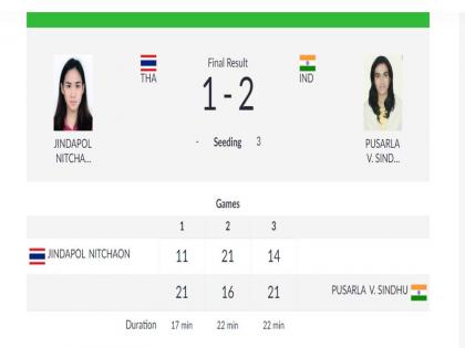 #Badminton पी. व्ही. सिंधूची उपांत्य फेरीत धडक. थायलंडच्या जिंदपोल निटचाओनचा 21-11, 16-21, 21-14 असा चुरशीच्या लढतीत पराभव केला. उपांत्य फेरीतील प्रवेशाने महिला एकेरीतील आणखी एक पदक निश्चित.