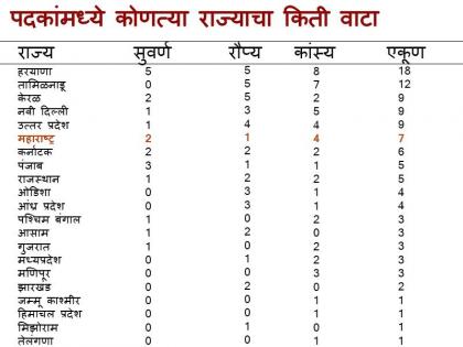 जकार्ता येथे पार पडलेल्या आशियाई क्रीडा स्पर्धेत भारताने एकून 69 पदकं जिंकली. त्यात 15 सुवर्ण, 24 रौप्य आणि 30 कांस्यपदकांचा समावेश होता. आशियाई स्पर्धेचा इतिहास पाहता भारताची ही सर्वोत्तम कामगिरी ठरली. 2010च्या ग्वांझावू आशियाई स्पर्धेत भारताने 65 पदकं जिंकली होती. त्या तुलनेत हा आकडा वाढला, परंतु यात महाराष्ट्राचा वाटा किती तर फक्त सात पदकांचा... राही सरनोबत व दत्तु भोकनळ यांचे सुवर्ण, कबड्डी संघाचे एक रौप्य व कांस्यपदकात महाराष्ट्राचे वाटेकरी, हीना सिधूचे व ब्रिज स्पर्धेतील व स्क्वॉशमधील कांस्य हा असा महाराष्ट्राचा वाटा. अन्य राज्यांच्या तुलनेत महाराष्ट्र किती पिछाडीवर आहे, हे यावरून कळते.