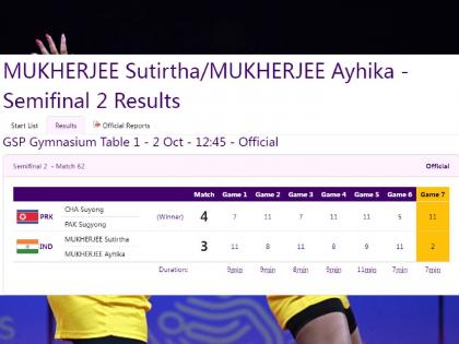शनिवारीच दोन्ही खेळाडूंनी आशियाई क्रीडा स्पर्धेच्या उपांत्य फेरीत पोहोचणारी पहिली भारतीय महिला जोडी बनून नवा इतिहास रचला होता. या दोघांनी जागतिक क्रमवारीत दुसऱ्या क्रमांकावर असलेल्या चेंग मेंग आणि वांग यिदी यांचा पराभव करून हे पदक निश्चित केले होते. उपांत्य फेरीच्या लढतीत मुखर्जी जोडीचा सामना उत्तर कोरियाच्या सुयोंग चा आणि सुयोंग पा या जोडीशी झाला. भारतीय जोडीने दमदार सुरुवात करत चार गुणांच्या आघाडीसह पहिला गेम जिंकला. त्यांनी दुसरा गेम कमी फरकाने गमावला असला तरी, त्यांनी लवकरच नियंत्रण मिळवले आणि तिसरा गेम जिंकला, कोरियन खेळाडूंना संधी दिली नाही.