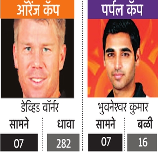 तर पर्पल कॅप सनरायजर्सच्या भुवनेश्वर कुमारकडे आहे. त्याने ७ सामन्यात १६ बळी घेतले आहेत. तर हैदराबादचाच कर्णधार डेव्हिड वॉर्नर याने आज पुन्हा आॅरेंज कॅप पटकावली.