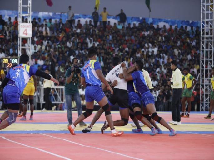 रिशांकने आपल्या पहिल्या चढाईत बोनस गुण करीत महाराष्ट्राच्या गुणांचे खाते खोलले. ८व्या मिनिटाला तुषार पाटीलने शिलकी ४ गडी एकाच चढाईत टिपत केरळवर पहिला लोण देत १५-०४ अशी आघाडी घेतली. पुन्हा जोरदार आक्रमण करीत दुसरा लोण देत आणला होता, पण केरळच्या शिलकी एक खेळाडूने बोनससह दोन गडी टिपत व निलेश साळुंखेची अव्वल पकड करीत होणारा लोण केरळने लांबविला. मध्यांतराला २४-१२अशी महाराष्ट्राकडे आघाडी होती. मध्यांतरानंतर ३ऱ्या मिनिटाला दुसरा लोण देत महाराष्ट्राने २९-१३अशी आघाडी घेतली. तिसरा लोण देताना पुन्हा एकदा तुषारने ६व्या मिनिटाला ४गडी टिपले तर शिलकी दोन गडी रिशांकने टिपत ७व्या मिनिटाला लोण देत ४२-१८ अशी आघाडी वाढविली. यानंतर तुषारला विश्रांती देण्यात आली. पण मध्यांतरा नंतर ११व्या मिनिटाला एका लोणची परतफेड करीत केरळ ने ३०-४५अशी आघाडी कमी केली. पुन्हा एकदा महाराष्ट्राने जोरदार कमबॅक करीत १६ गुणांनी सामना खिशात टाकला.महाराष्ट्राकडून तुषार पाटील ७चढाया करीत १०गुण मिळविले. अजिंक्य पवारने ८ चढायात ८गुण घेतले. रिशांकने देखील चढायात गुण घेतले. विशाल माने व विकास काळे यांनी ४-४पकडी घेत आपली भूमिका पार पाडली. केरळ कडून जिष्णु के के यांनी ८ चढायात २ बोनस व ६ गडी टिपले. सागर कृष्णाने ४ पकडी करीत चांगला प्रतिकार केला.दुसऱ्या सामन्यात बिहारने राजस्थानचा प्रतिकार ४५-४४असा मोडून काढत उपांत्यपूर्व फेरी गाठली. मध्यांतराला २३-१९अशी आघाडी बिहारकडे होती. बिहार कडून नवीनने ३४ चढाया करताना ३बोनस सह १९ गुण मिळवीत या विजयात म्हत्वाचे योगदान दिले. राजस्थानकडून सचिनने १७ चढायात ३ बोनस व १२गुण घेत चांगला प्रतिकार केला. इतर सामन्यात कर्नाटकने पोंडेचरिला ६४-२२असे, तर भारतीय रेल्वेने दिल्लीला ५६- ३१असे नमवित आगेकूच केली.