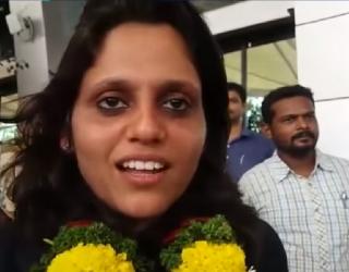 सांघिक गटात सुवर्ण पदक विजेत्या पूजा सहस्त्रबुद्धे, पुणे विमानतळावर स्वागत