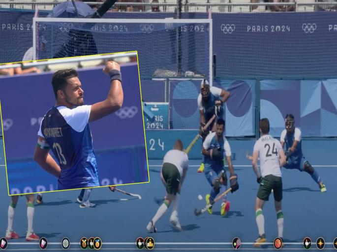 india vs ireland hockey olympics | पॅरिस : न्यूझीलंडचा पराभव करून भारताच्या हॉकी संघाने ऑलिम्पिक स्पर्धेत विजयी सलामी दिली. त्यानंतरच्या सामन्यात अर्जेंटिनाविरूद्ध कसाबसा पराभव टाळून भारतीय संघाने आपला प्रवास अपराजित ठेवला. मंगळवारी भारत आणि आयर्लंड यांच्यात लढत झाली. पॅरिस ऑलिम्पिक २०२४ मध्ये टीम इंडियाने पहिल्यांदाच पहिल्या क्वार्टरमध्ये गोल करण्याची किमया साधली. मागील दोन सामन्यांमध्ये भारताला अखेरच्या क्षणी गोल करता आल्याने पराभव टाळता आला. आज मात्र काहीसे वेगळे चित्र पाहायला मिळाले. भारताने पहिल्याच क्वार्टरमध्ये गोल केल्याने आयर्लंडचे शिलेदार दबावात दिसले. (ind vs ire hockey news)