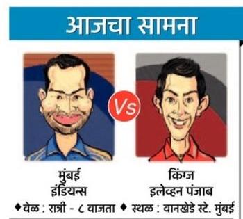 पंजाब या सामन्यात पराभूत झाल्यास प्ले ऑफच्या बाहेर जाईल. तर मुंबईला क्वालिफायर खेळायची असेल.तर विजय गरजेचा आहे. मुंबईच्या फलंदाजांसमोर संदीप शर्मा, मोहित शर्मा, मागच्या सामन्यात संधी मिळालेला राहूल तेवतिया यांचे आव्हान आहे. तेवतियाने केकेआरच्या गंभीर आणि उथप्पा या खंदया फलंदाजांना बाद करत आपला दम दाखवून दिला होता. मोहित शर्माला गवसलेला सूर ही पंजाबसाठी दिलासा देणारी बाब आहे.
