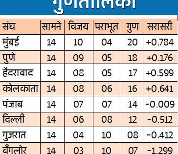 रॉयल चॅलेंजर्स बँगलोर : २० षटकांत ६ बाद १६१ धावा (विराट कोहली ५८, ख्रिस गेल ४८; पॅट कमिन्स २/२१) वि. वि. दिल्ली डेअरडेव्हिल्स : २० षटकांत सर्व बाद १५१ धावा (ऋषभ पंत ४५, श्रेयस अय्यर ३२; पवन नेगी ३/१०, हर्षल पटेल ३/४३).