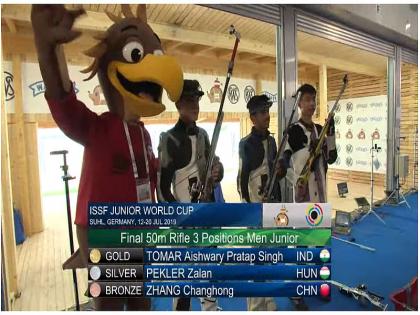 News Flash: Shooting | Aishwarya Pratap Singh Tomar wins GOLD medal (creating New Junior World Record scoring 459.3 points in Final) in 50m Rifle 3P event of ISSF Junior World Cup in Germany.