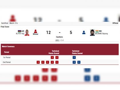 #Tokyo2020 | Wrestler Bajrang Punia loses to Azerbaijan’s Haji Aliyev 5-12 in Men's 65kg Freestyle semi-final pic.twitter.com/6Gk5u19UJc