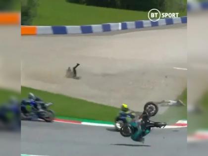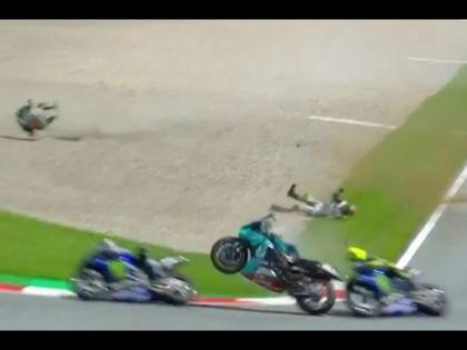 मोर्बीडेल्ली आणि झार्को यांच्या बाईक्सचा चुराडा झाला. नशीबानं या दोघांना गंभीर जखम झाली नाही. पण, यात नऊ वेळचा वर्ल्ड चॅम्पियन रोसी थोडक्यात वाचला.