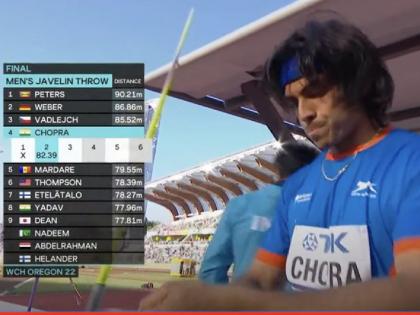 #NeerajChopra 88.13m in fourth attempt, moves to silver medal position#WorldAthleticsChamps