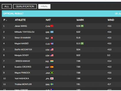 Murali Sreeshankar ( long Jump) World Athletics Championships 2022 : भारताच्या मुरली श्रीशंकरने ( Murali Sreeshankar) जागतिक अॅथलेटिक्स अजिंक्यपद स्पर्धेतील लांब उडीच्या अंतिम फेरीत पदक जिंकण्यात अपयश आले. ८.३६ मीटर हा राष्ट्रीय विक्रम नावावर असलेल्या श्रीशंकरला फायलनमध्ये ७.९६ मीटर लांब उडीच मारता आली. सहापैकी ३ प्रयत्नात त्याच्याकडून फाऊल झाले. त्याने सहाव्या प्रयत्नात ७.८३ मीटर लांब उडी मारली अन् भारताची पदकाची आशाही मावळली. श्रीशंकरला सातव्या स्थानावर समाधान मानावे लागले. चीनच्या जिअँनन वँगने ८.३६ मीटरसह सुवर्णपदक नावावर केले, तर ग्रीसच्या मिल्टिआडीस तेंटोग्लोऊला ८.३२ मीटरसह रौप्यपदकावर समाधान मानावे लागले.