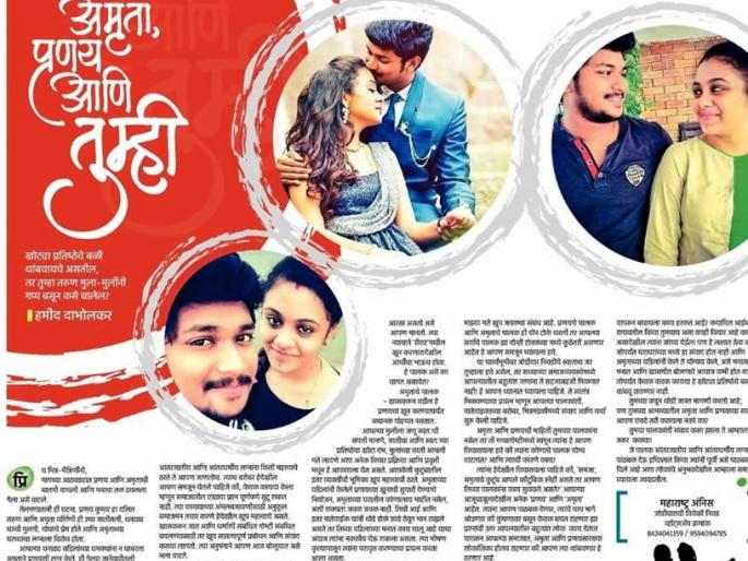 ‘अमृता, प्रणय आणि तुम्ही’ हा डॉ. हमीद दाभोलकर यांचा लेख ऑक्सिजनमध्ये (दि. 27 सप्टेंबर 2018) प्रसिद्ध झाला. त्या लेखात असं म्हटलं होतं की, तरुण मुलांनी आपल्याच पालकांना विचारावं की, आम्ही आंतरजातीय किंवा आंतरधर्मीय लग्न केलं तर तुम्ही काय कराल? अमृताच्या वडिलांसारखं वागाल का? त्यावर आलेल्या प्रतिक्रियांचं हे संकलन