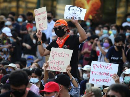 गेल्या बुधवारी राजधानी बँकाकमध्ये प्रचंड मोठं आंदोलन झालं. ज्यात फिजिकल डिस्टन्सिंगचं उल्लंघन करत हजारो नागरिकांनी गव्हर्नमेंट हाऊसला विळखा घातला. भर पावसात छत्र्या घेऊन आंदोलकांनी ठिय्या आंदोलन केलं.