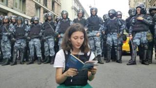 काही दिवसांपासून या रशियन तरुणीचे दोन फोटो सोशल मीडियात सध्या तुफान व्हायरल झाले होते. त्यातल्या पहिल्या फोटोत ती मुलगी सशस्त्र पोलिसांच्या घोळक्यात जमिनीवर शांतपणे बसलेली दिसते. हातात पुस्तकाची प्रत असून, ती काहीतरी वाचते आहे. दुसर्या फोटोत त्या तरुणीला पोलीस हात-पाय पकडून उलटं लटकवून फरफटत घेऊन जात आहेत.