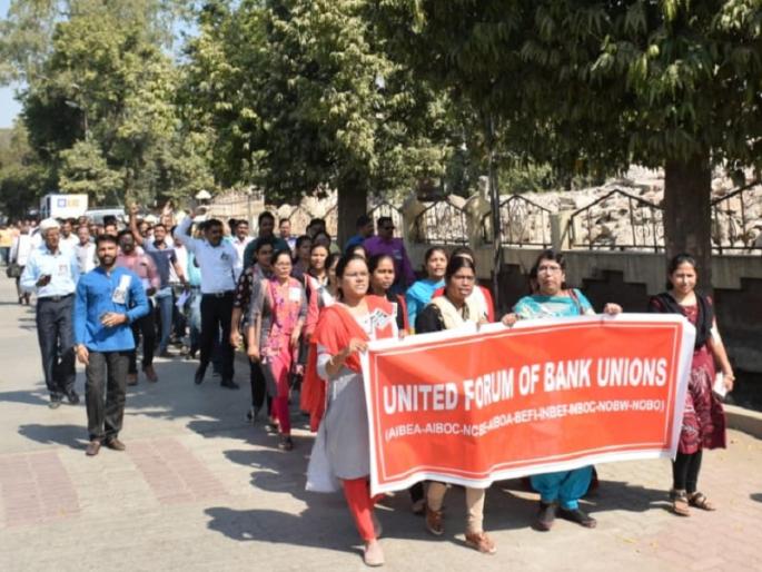 वीस बॅंकांच्या कर्मचाऱ्यांचा सहभागपरभणी जिल्ह्यात २० राष्ट्रीयीकृत बँका असून या बँकांच्या १६४ शाखा जिल्हाभरात विखुरलेल्या आहेत. या सर्व शाखांमधील सुमारे ३ हजार कर्मचारी आजच्या संपामध्ये सहभागी झाल्याची माहिती संघटनेच्या वतीने देण्यात आली. काय आहेत मागण्या पगार पत्रकाच्या घटकांवर २० टक्के वेतनवाढ द्यावी, पाच दिवसांचा आठवडा करावा, स्पेशल अलाऊन्स हा बेसिकमध्ये समाविष्ट करावा, एनपीएस योजना निकाली काढावी, पेन्शनमध्ये सुधारणा करा, अधिकार्यांसाठी कामाचे तास निश्चित करावेत, कंत्राटी कर्मचाऱ्यांना समान वेतन द्यावे, आदी मागण्यांसाठी हा संप पुकारण्यात आला आहे.