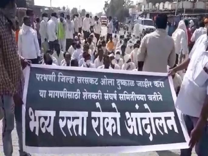 परभणी : जिल्ह्यात ओला दुष्काळ जाहीर करुन शेतकऱ्यांना सरसकट मदत द्यावी, या प्रमुख मागणीसाठी शेतकरी संघर्ष समितीच्या वतीने ३ नोव्हेंबर रोजी प्रमुख मार्गावर रास्ता रोको आंदोलन करण्यात आले. त्यामुळे दोन तास वाहतूक ठप्प झाली होती.