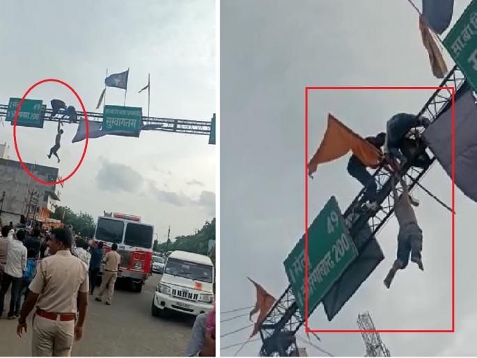 Video: ४० फुट उंच कमानीवर चढून युवकाचा गोंधळ, नंतर घेतली उडी; पोलिसांची तारांबळ