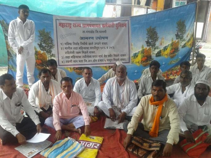 गंगाखेड ( परभणी ) : तालुक्यातील ग्रामपंचायत कार्यालयात सेवक व पाणी पुरवठा विभागात कार्यरत कर्मचाऱ्यांनी सहा महीण्यापासुन थकीत वेतन, राहणीमान भत्ता द्यावा व भविष्य निर्वाह निधीची कपात करावी आदी विविध मागण्यासाठी आजपासुन पंचायत समिती कार्यालयाच्या प्रवेशद्वारावर आमरण उपोषण सुरू केले आहे.