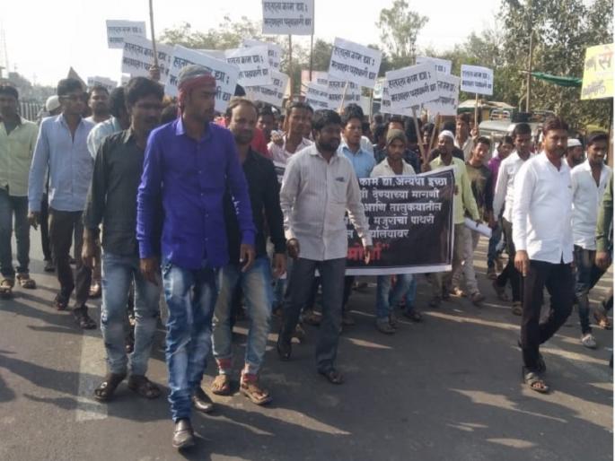 तालुक्यात पावसा अभावी बहुतांश बांधकामे बंद आहेत.यामुळे यावर अवलंबून असलेल्या मजुरांच्या हाताला काम राहिले नाही. मजुरांवर व त्यांच्या कुटुंबांवर उपासमारीची वेळ आली आहे. हाताला काम देण्याची मागणी करत मजुरांनी 3 डिसेंबर रोजी पाथरी तहसीलदारांना एक निवेदन दिले होते. यानंतरही काम उपलब्ध न झाल्याने मजुरांनी आज तहसील कार्यालयावर मोर्चा काढला. या मोर्चामध्ये नगरसेवक अलोक चौधरी, वाजेद राज, लाईक राज ,एजाज राज, नसिरुद्दिन राज , खमरूदीन राज ,साजिद राज यांच्यासह तालुक्यातील बांधकाम मजुरांचा सहभाग होता.