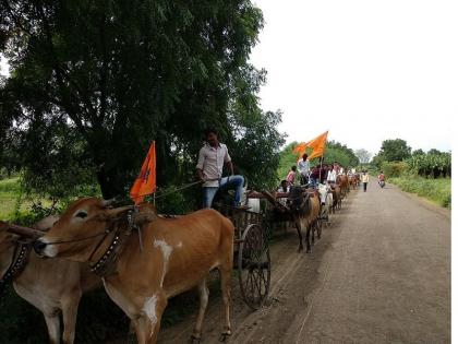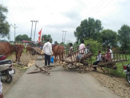 पाथरी तालुक्यात आष्टीफाटा येथे ५१ बैलगाड्या रस्त्यावर आडव्या लावून चक्काजाम आंदोलन केले जात आहे.