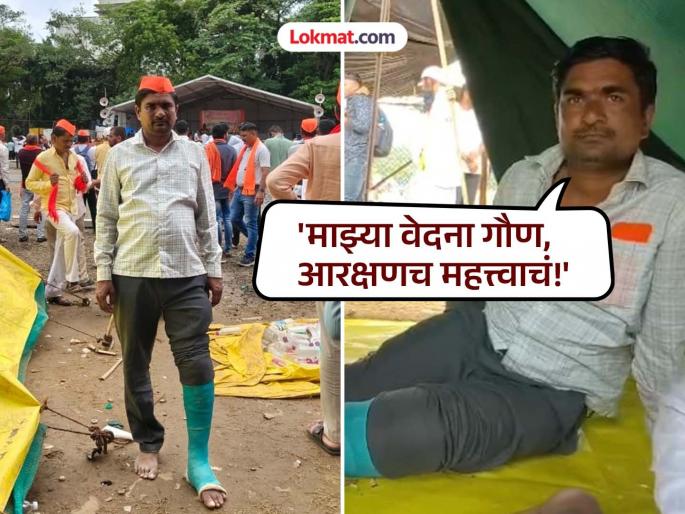 - विठ्ठल भिसेपाथरी : पाय दुखतोय, पण लेकरांच्या भविष्यासाठी आंदोलन थांबवणं शक्य नाही. माझ्या वेदना गौण आहेत; आरक्षण महत्त्वाचं आहे, असं सांगत पायाला फ्रॅक्चर झालेल्या अवस्थेतच पाथरी तालुक्यातील चाटे पिंपळगाव येथील शेतकरी विठ्ठल काळे (४०) मराठा आरक्षणासाठी मुंबईतील आंदोलनात सहभागी झाले. गंगाखेड, परभणी येथील संदीप गव्हाणे यांनी सायकलवरून मुंबई गाठली आहे. सारोळा बु. येथील तरुणांनी तर आंदोलनस्थळी मुंडण आंदोलन करीत निषेध केला.