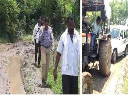 पूर्णा (परभणी ) : तालुक्यातील माहेर गावचा मुख्य रस्ता पाहण्यासाठी आलेल्या अधिकाऱ्यांना रस्ता नसल्याने मंगळवारी ( दि 29 ) तीन किलोमीटर चिखल दगडाच्या रस्त्यातून पायी प्रवास करावा लागला. यावेळी तहसीलदारांची गाडी चिखलात फसल्याने चक्क ट्रॅक्टर लावून बाहेर काढावी लागली. ग्रामस्थांच्या रोजच्या जीवघेण्या समस्यांचा प्रत्येक्ष अनुभव यावेळी अधिकाऱ्यांना आला.