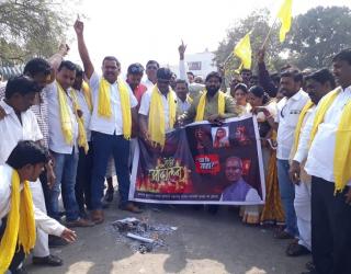 परभणी : धनगर समाजाकडून युती सरकारच्या आरक्षण वचननाम्याची होळी