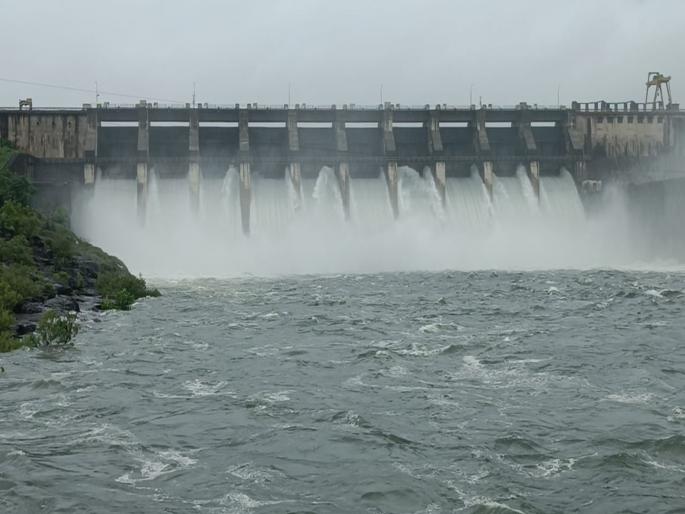 मुसळधार पावसाने आवक वाढलीवाढती आवक लक्षात घेऊन आणि पूर नियंत्रणासाठी 15 ऑगस्ट रोजी येलदरी धरणातून येथील वीज निर्मिती केंद्राच्या दोन जनित्रातून पाण्याचा विसर्ग करण्यात आला.त्यानंतर 16 ऑगस्ट रोजी मुसळधार पाऊस झाल्याने धरणाच्या पाणी पातळीत वाढ होत गेली. रविवारी धरणात 97 टक्के पाणीसाठा झाला. यामुळे जलविद्युत केंद्राचे तीन युनिट सोडल्यानंतर रविवारी सायंकाळी धरणाचे सुरवातीला दोन तर रात्री चार दरवाजे उघडले होते. मात्र पांडूक्षेत्रात मोठ्या प्रमाणात पाऊस सुरू असल्यामुळे धरणात पाण्याची आवक वाढल्याने प्रशासनाने धरणाचे सर्व दहा दरवाजे उघडून पूर्णा नदीपात्रात विसर्ग करण्याचा निर्णय घेतला.