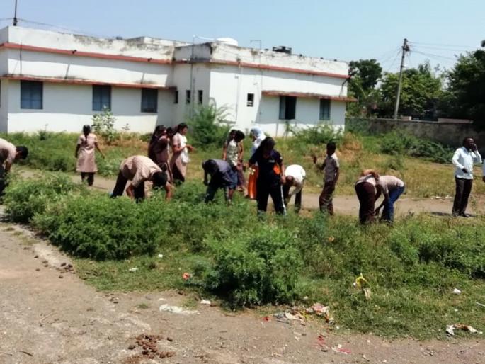 परभणी : श्रमदानातून स्वच्छ केला शाळा परिसर
