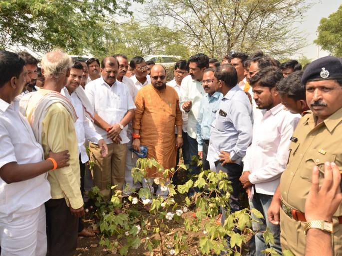 बुधवारी सकाळी परभणी येथील आढावा बैठक आटोपल्यानंतर पालकमंत्री गुलाबराव पाटील पाथरी तालुक्यातील बाभळगाव येथे दाखल झाले़ येथे त्यांनी भागवत रंगनाथराव पानपते यांच्या शेतातील कापूस पिकाची पाहणी केली़ पेरणीसाठी झालेला खर्च आणि उत्पन्न यातील तफावतीबाबत शेतकºयांनी पालकमंत्र्यांना माहिती दिली़ यावेळी खा़ बंडू जाधव, आ़ मोहन फड, विशाल कदम, तालुकाप्रमुख मुंजाभाऊ कोल्हे, उपविभागीय अधिकारी कोळी आदींची उपस्थिती होती़
