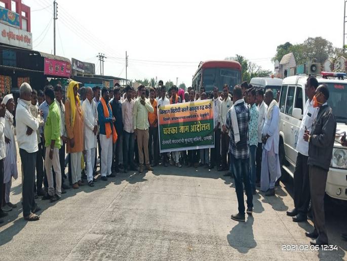 दिल्ली येथे आंदोलन करणाऱ्या शेतकऱ्यांना पाठिंबा दर्शविण्यासाठी आणि केंद्र शासनाच्या निषेध नोंदविण्यासाठी हे आंदोलन पुकारले होते. शनिवारी दुपारी १२ वाजण्याच्या सुमारास आंदोलनाला प्रारंभ झाला. मुख्य रस्त्यावर आडवे बसून शेतकऱ्यांनी रस्ता अडवून धरल्याने रा्ष्ट्रीय महामार्ग असलेल्या या मार्गावरील वाहतूक एक तास ठप्प झाली होती. शेतकरी संघटनांच्या सुकाणू समितीचे निमंत्रक विलास बाबर यांच्या नेतृत्वाखाली हे आंदोलन करण्यात आले. पोखर्णी, इंदेवाडी, सुरपिंपरी, पेगरगव्हाण, उमरी, पिंपळगाव, दामपुरी आदी २०ते २५ गावांतील शेतकरी या आंदोलनात सहभागी झाले होते. दुपारी १ वाजण्याच्या सुमारास आंदोलन मागे घेण्यात आले. आंदोलनस्थळी पोलिसांनी कडक बंदोबस्त लावला होता.