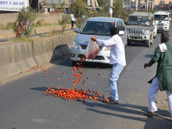 परभणी जिल्ह्यात दुष्काळी परिस्थिती असून, रबीचा हंगाम वाया गेला आहे़ त्यामुळे शेतकऱ्यांनी कमी पाण्यावर येणारा भाजीपाला पिकविला़ मात्र भाजीपाल्यालाही भाव मिळत नाही़ टोमॅटोलाही अत्यल्प भाव मिळाल्याने शेतकऱ्यांना नुकसान सहन करावे लागत आहे़ या शिवाय जिल्ह्यात दुष्काळी योजनांना सुरुवात झाली नाही़ या कारणांवरून कृषी राज्यमंत्री आणि शासनाचा निषेध नोंदविण्यासाठी कार्यकर्त्यांनी उड्डाणपुलालगत कृषी राज्यमंत्री सदाभाऊ खोत यांच्या वाहनासमोर टोमॅटो फेकून रोष व्यक्त केला़ यावेळी पोलीस बंदोबस्तही होता़ परंतु, अचानक झालेल्या या प्रकारामुळे काहीसा गोंधळ उडाला आणि त्याच परिस्थिती खोत यांच्या वाहनांचा ताफा पुढे निघून गेला़
