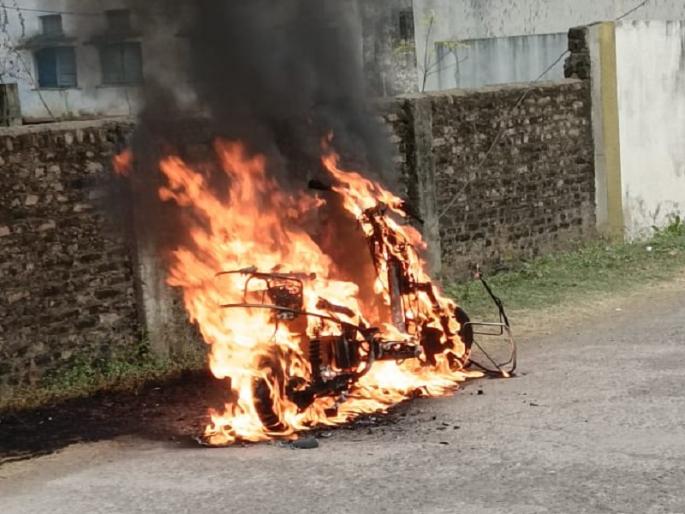 थरारक ! धावत्या इलेक्ट्रीक मोपेडने घेतला पेट, सुदैवाने जीवितहानी टळली