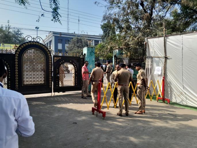 बी रघुनाथ सभागृहाच्या परिसराला पोलिसांच्या कडेकोट सुरक्षेमुळे छावणीचे स्वरूप आले आहे.