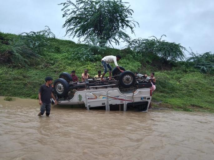 कुपटा ( परभणी ) : पुराचे पाणी पुलावरून वाहत असताना धाडस करून त्यात जीप घालणे चालकाच्या जीवावर बेतले होते. मात्र, प्रसंगावधान राखून चालकाने जीपबाहेर उडी घेत पोहत सुरक्षित स्थळ गाठून जीव वाचवला. हि घटना सेलू तालुक्यातील मौजे कुपटा येथे मंगळवारी ( डी. १३ ) रात्री घडली. धनंजय गोविंदराव सोळंके असे चालकाचे नाव असून दुसऱ्या दिवशी गावकऱ्यांनी क्रेनच्या सहाय्याने जीप बाहेर काढली.