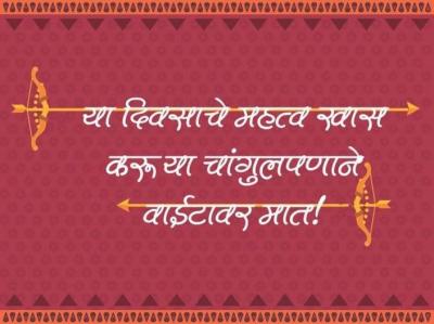 सध्या कोरोनाचा कहर असल्यामुळे लोक एकमेकांना भेटू शकत नाही. ऐरवी दसऱ्यानिमित्त खूप लगबग पाहायला मिळते. पण सध्या कोरोनाचं सावट असल्यामुळे लोक घरच्याघरी आपला आनंद साजरा करतील. ही खास शुभेच्छापत्रे देऊन तुम्ही आपला आनंद द्विगुणित करू शकता.
