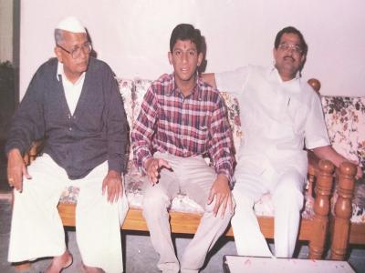 आजोबा (आईचे वडील) नामदेवराव परजणे यांच्यासमवेत
