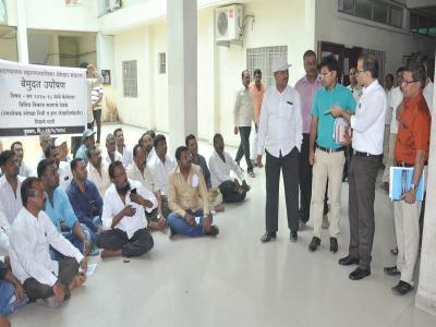 तुम्हीच पाहा... जिल्हाधिका-यांनी कसे हुसकावले आंदोलक ठेकेदार !