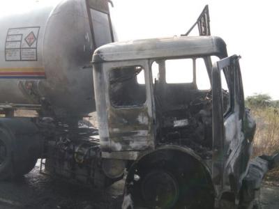 या आगीत टॅँकरची कॅबिन पूर्ण जळाली. सुदैवाने ही आग गॅसपर्यंत पोहचली नाही. अन्यथा मोठी दुर्घटना घडली असती.