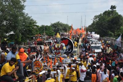 मिरवणुकीत भोले शंकराच्या व रामभक्त हनुमान तसेच छत्रपती शिवरायांच्या मूर्तींसह नुकत्याच यशस्वी झालेल्या चंद्रयान 3 मोहिमेच्या प्रतिमेचाही समावेश दिसून आला.