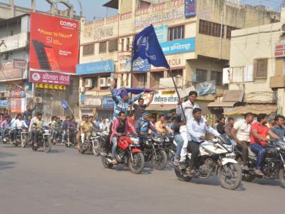 शेकडो युवकांनी मोटारसायकल मोटारसायकल रॅली काढून दुकाने बंद करण्याचे आवाहन केले.